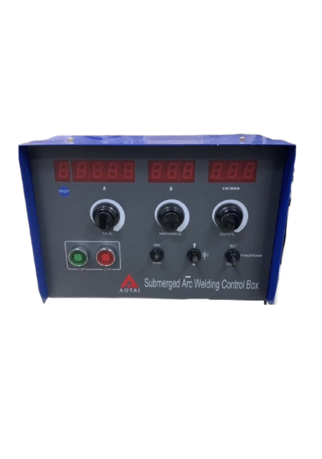 Блок управления SAW используется совместно с различными подвесными головками и сварочными источниками автоматической сварки или наплавки под слоем флюса. Блок является полностью цифровым и обеспечивает предварительное задание сварочных параметров (напряжение, ток, скорость перемещения), их индикацию и плавную регулировку во время сварки. Блок имеет 10 ячеек памяти. Блок позволяет выбрать направление перемещения, обеспечить подачу сварочной проволоки вперед/назад, имеет режим предустановка/работа, а также тумблер сварка старт/стоп. К блоку подключается кабель управления сварочным источником, кабель питания и управления приводом подачи сварочной проволоки (от этого кабеля также подключаются лазерная указка и провод обратной связи по напряжению). Питание блока осуществляется от источника сварочного тока. Блок является универсальным и может быть использован для управления любыми сварочными источниками серии ASAW. Для тандемной сварки используется сдвоенный блок управления, который позволяет задавать сварочные режимы для двух источников тока и позволяет подключать два независимых привода подачи сварочных головок.